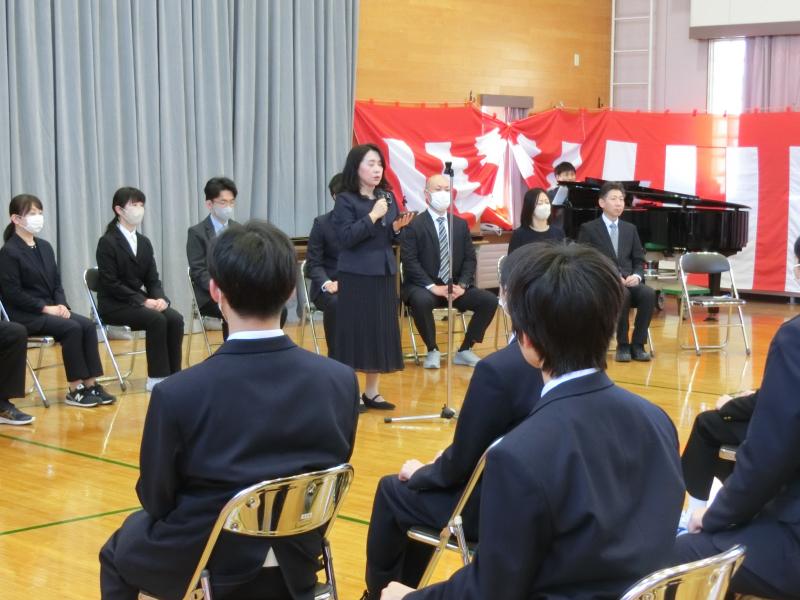 その後の離任式では、転任する先生方から本校での思い出や温かい励ましのメッセージをいただきました。