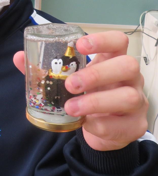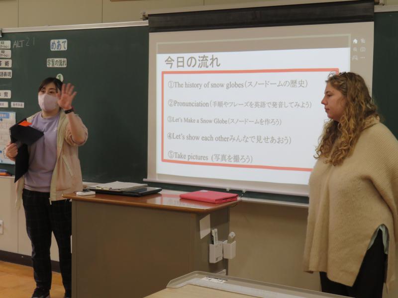 高等部では、スノードーム(snow globe)をテーマに、その歴史や、使う道具や材料を英語で何というかを教えてもらい、一緒にsnow globeを作りました。個性豊かでキラキラした、素敵なsnow globeができました。
