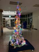 今年も事務室前ホールに児童生徒制作のクリスマスツリーが登場しました。